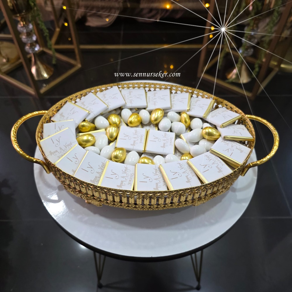 Altın Aynalı Tepside İsim Baskılı İsteme, Söz & Nişan Çikolatası 4075