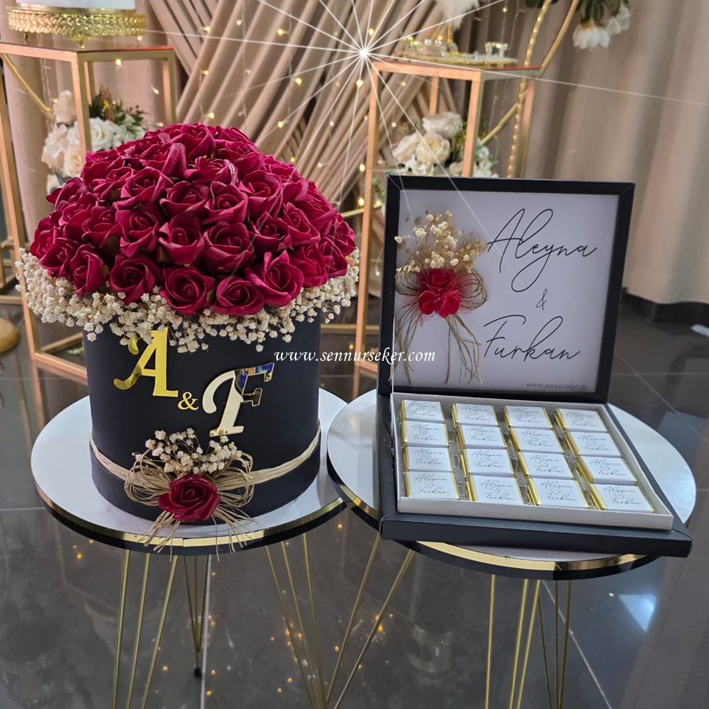 Söz ve nişan törenlerinin vazgeçilmezi olan kız isteme çikolatası ve çiçeği, artık klasik sunumlardan sıyrılarak modern ve kişiselleştirilmiş bir hal alıyor. Sizin için hazırladığımız bu özel set, aşkınızın baş harflerini ve isimlerini taşıyan detaylarla dolu.
