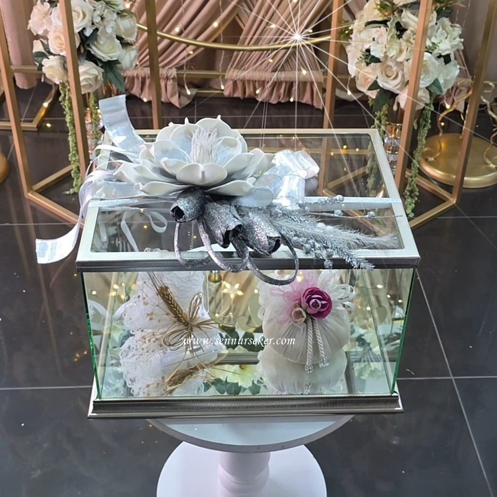 Cam Bohça Kutusu – Söz, Nişan ve Düğün İçin Şık Sunum Kutusu Büyük Boy 4077