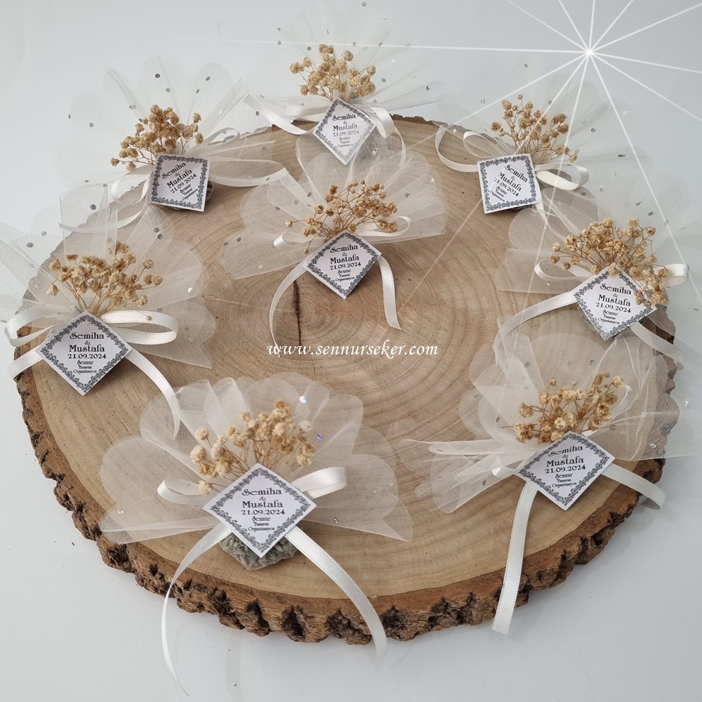 Cipsolu Lavantalı Nikah Şekeri, Çok sade ve şık olarak tasarlanmış cipsolar ve lavanta ile bütünlenmiş bir hediyeliktir.