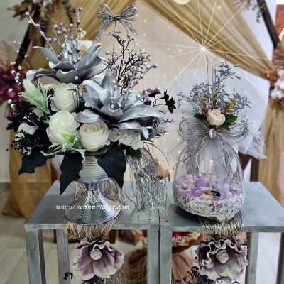 Gümüşün Siyah Beyazla Dansı Çiçek Çikolata Setimiz de Özel Gümüş dövmeli ayaklı vazomuzda yeni trend çiçeklerimizle tasarladığımız çok şık bir çiçek arajmanımız ile birlikte üsten tutmalı kristal toplu gümüş renk çikolatalık kabımızda melodi marka madlen (50-55 Arası) ve spesial çikolatalarımızla (18-20 Adet) ve bolca draje ile tasarlanmış olup isteme, söz veya nişanınızda sunabileceğiniz şık bir çiçek çikolata setidir.