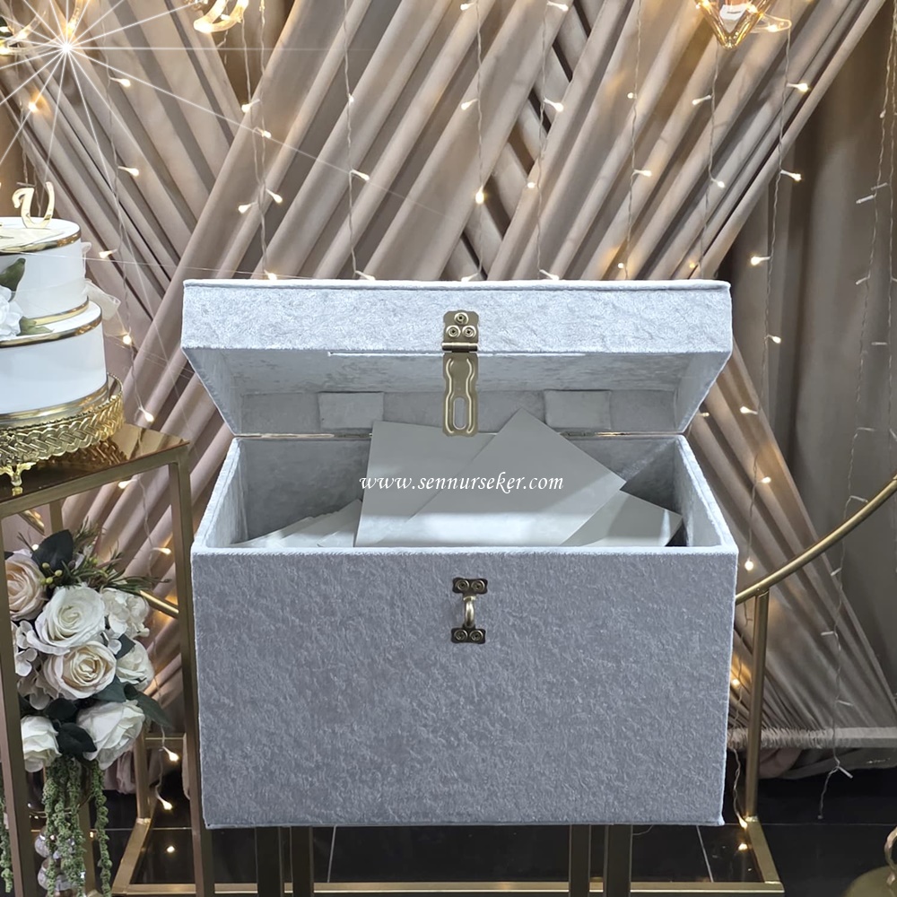 Düğün, nişan, söz gibi özel günlerde "zarf takı sandığı" olarak da kullanılabilen bu kutu, aynı zamanda ev dekorasyonuna da zarif bir dokunuş sunar. Kadife dış kaplaması ve iç yüzeyi sayesinde takılarınız çizilmeden muhafaza edilir.