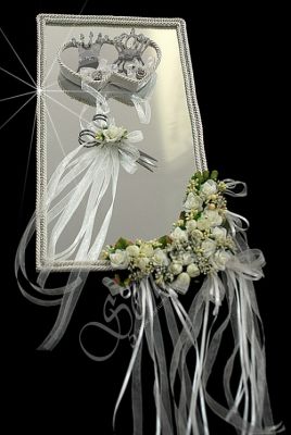 Yüzük tepsisi ve kaidesi ithal taş ve çiçeklerle süslenmiştir