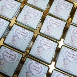 Metal Büyük Kutuda Aslanlı Bebek Çikolatası içerisinde 100 adet isim baskılı madlen çikolata bulunmaktadır.