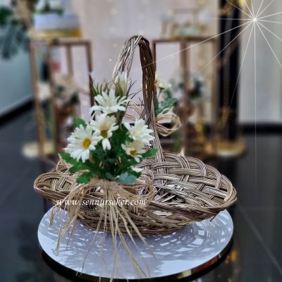 Papatya çiçekleri ile süslenmiş olup, Söz, Nişan, Bohça, Bebek, Sünnet merasimlerinizde hediyeliklerinizi sunabileceğiniz çok şık ve sade bir sepettir.