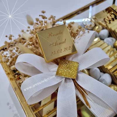 Gelin Damat isimleri de kutunun üzerine pleksi ile yazılmıştır.