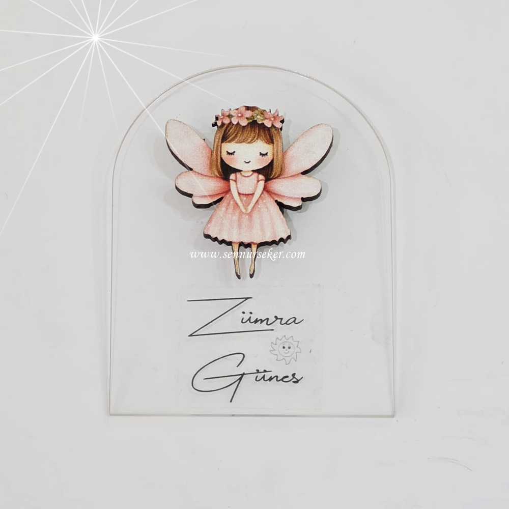 Şeffaf Pleksi Üzeri Ahşap Bebek Figürlü İsimli Magnet Hediyelik 4104