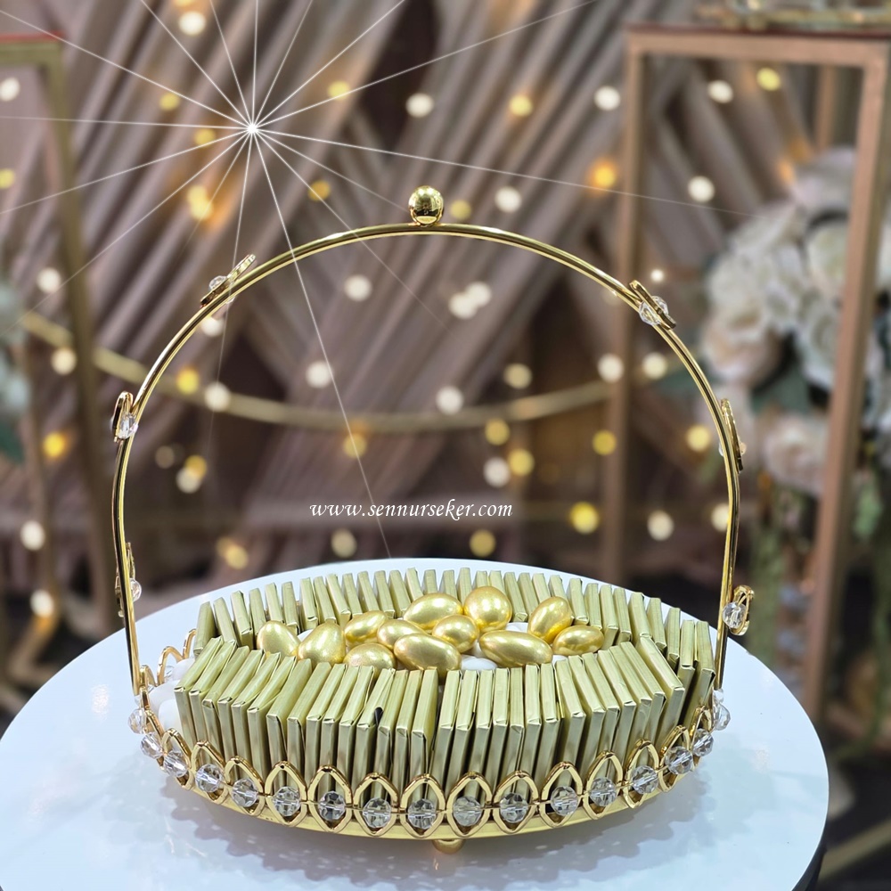 Söz, nişan ve kız isteme merasimlerinizde zarafetiyle göz kamaştıracak, lezzetiyle unutulmaz bir iz bırakacak olan bu özel tasarım çikolata seti, en kaliteli malzemelerle titizlikle hazırlandı. Üstten saplı, oval ve kristal taş detaylarıyla bezenmiş lüks sunumluk, tören sonrası evinizde şık bir dekoratif obje olarak kullanılmaya devam edilebilir