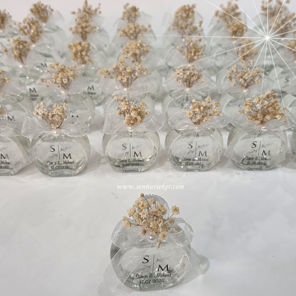 Yuvarlak Cam Şişede Simli Şeffaf Kolonya, Söz, Nişan, Nikah Hediyeliği 4037